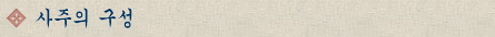 ¹«·á»çÁÖ¿¡¼­µµ ¸¶Âù°¡Áö·Î »ç¶÷ÀÇ ±æÈäÈ­º¹À» ³â(Ò´), ¿ù(êÅ), ÀÏ(ìí), ½Ã(ãÁ)¸¦ ¹ÙÅÁÀ¸·Î ÇÏ¿© ¹Ì·¡¿¡ ´ëÇØ ÀÚ¼¼ÇÏ°Ô ¾Ë·ÁÁÖ´Â Çй®À̱⠶§¹®¿¡ »çÁÖ¿¡¼­ °¡Àå ±âº»ÀûÀ¸·Î ±¸¼ºÇϰíÀÖ´Â ³â(Ò´), ¿ù(êÅ), ÀÏ(ìí), ½Ã(ãÁ)¾ß ¸»·Î »çÁÖ¸¦ ±¸¼ºÇÏ°í ¶Ç »çÁÖ¸¦ º¸±â À§ÇÑ °¡Àå ±âº»ÀûÀÎ ±¸¼º¿ä¼ÒÀÎ °ÍÀÔ´Ï´Ù.